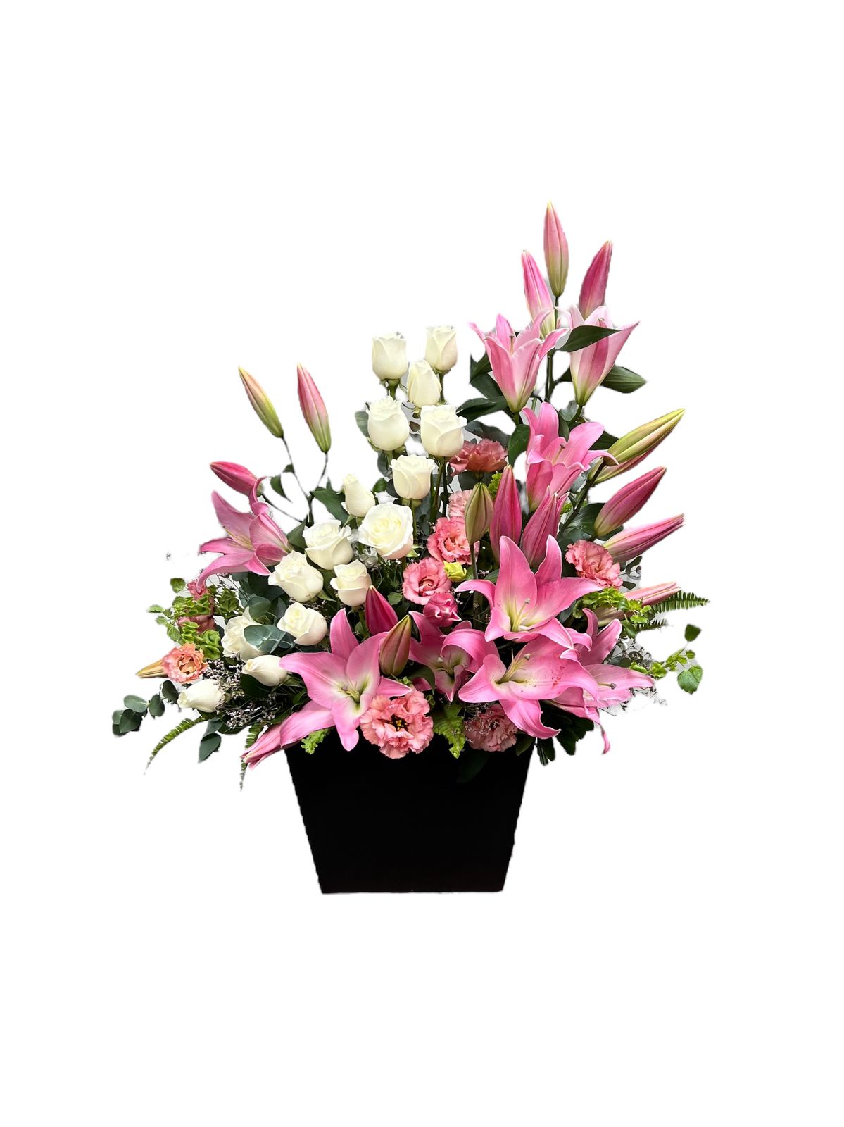 Tierno arreglo floral que combina la elegancia atemporal de rosas blancas con la delicadeza del acapulco y lisianthus. Esta composición cuidadosamente diseñada presenta flores premium seleccionadas por su calidad y longevidad.